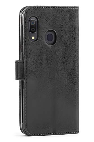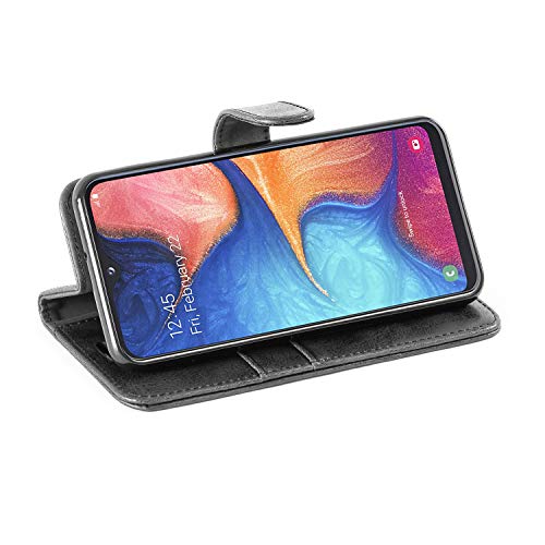 Mulbess Custodia per Samsung Galaxy A20E, Custodia Magnetica Flip con Chiusura, Sintetica Portacellulare Protezione, Vintage Nero
