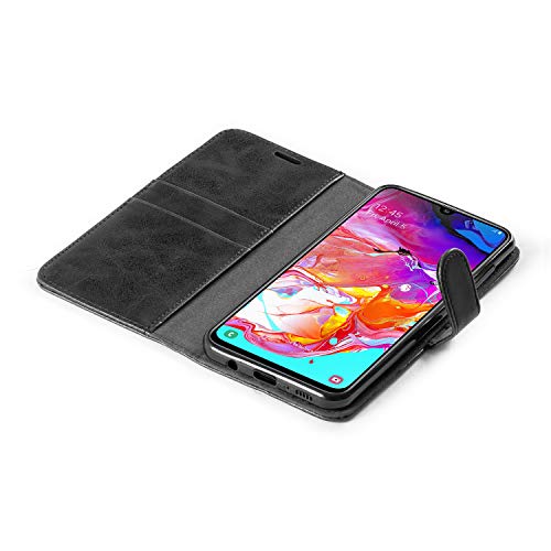 Mulbess Custodia per Samsung Galaxy A70, Custodia Magnetica Flip con Chiusura, Sintetica Portacellulare Protezione, Vintage Nero