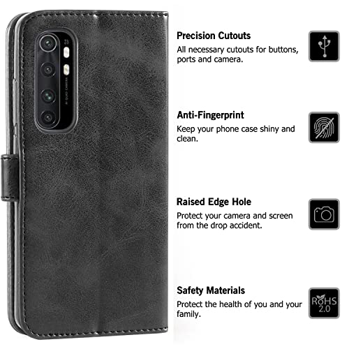 Mulbess Custodia per Xiaomi Mi Note 10 Lite, Custodia Magnetica Flip con Chiusura, Sintetica Portacellulare Protezione, Vintage Nero