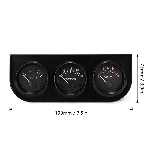 Mulcort Misuratore di volt 3-in-1 da 52 mm + misuratore della temperatura dell'acqua + kit indicatore dell'olio Misuratore di volt o indicatore della temperatura dell'olio