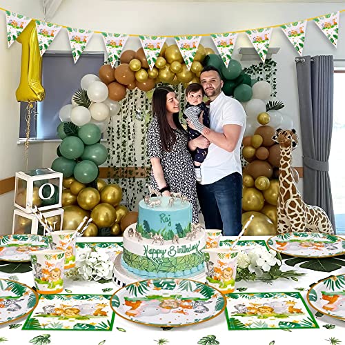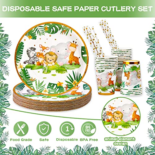 MULEVIP Animali della Giungla Piatto Compleann 135 PCS Stoviglie Compleanno,Animali Giungla Stoviglie per Feste Animali Giungla,Stoviglie per Feste di Animali con Piatti,Tazze,Tovaglioli,25 Ospiti