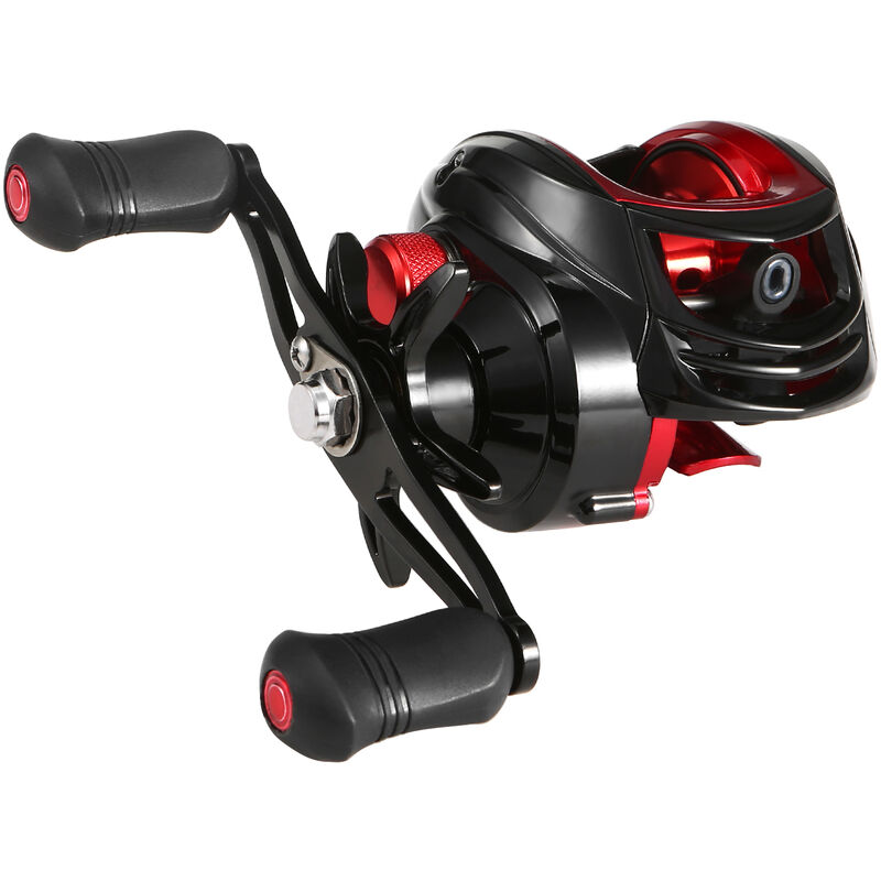 Caratteristiche: Super compatto con design aerodinamico, facile da impugnare e trasportare. L'elevato rapporto di trasmissione 7.2: 1 lo rende piu veloce. Freno magnetico a 9 marce per un funzionamento flessibile e conveniente. 5 kg Max trascinamento con manopola di regolazione fine, ridurre al minimo i giochi, piu stabile e sensibile. L'anello di guida in ceramica fa male alla lenza. L'ingranaggio di trasmissione CNC offre maggiore scorrevolezza e durata. Specifiche: Materiale: nylon + fibra di vetro + ottone. Colore: rosso e nero. Tipo: sinistra / destra (opzionale). Cuscinetti a sfera: 18 + 1 Rapporto di trasmissione: 7,2: 1 Capacita della linea (mm / m): 0,26 / 210, 0,28 / 180, 0,30 / 140 Sistema frenante: freno magnetico. Max Drag: 5 kg / 11,0 lb. Peso dell'articolo: 221 g / 7,8 once Peso della confezione: 280 g / 9,9 once Formato del pacchetto: 14 * 12 * 7,4 cm / 5,5 * 4,7 * 2,9 pollici Lista imballaggio: 1 * mulinello da baitcasting