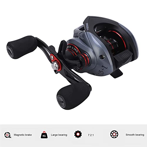 Mulinello da baitcasting 7.2:1, doppio sistema frenante Mulinello da baitcasting Bobina da micro tazza per esterno(Mano sinistra)