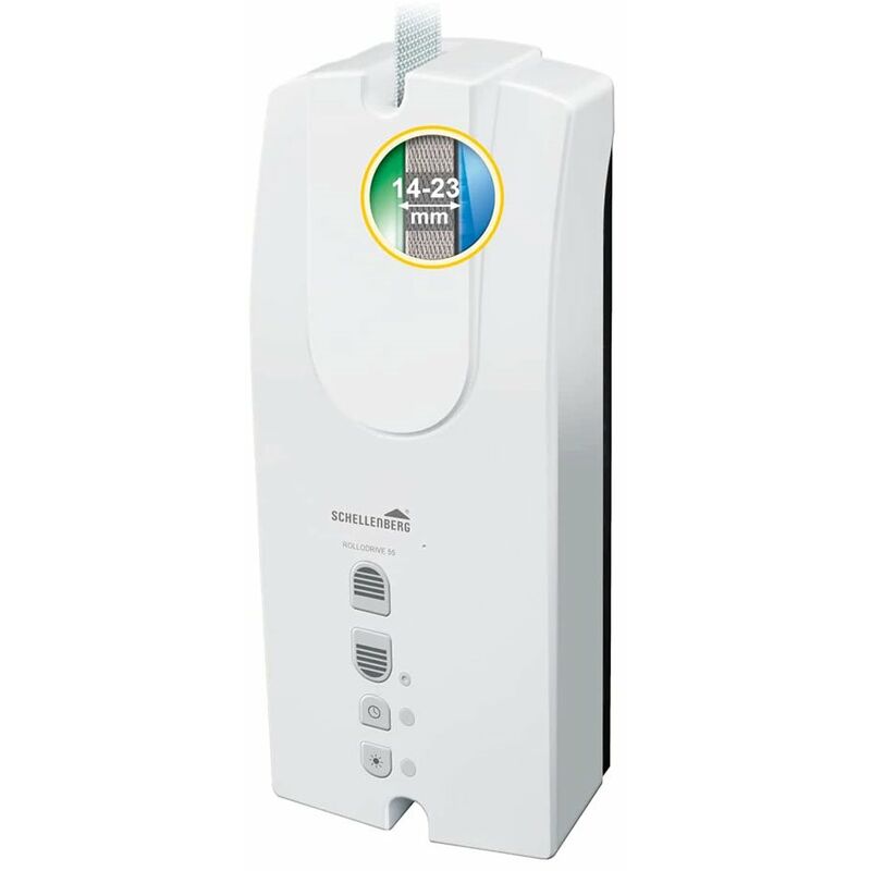 Bobina Rolodrive 55. 22725 Schellenberg. Facile da installare senza aprire il cassonetto dell'otturatore. Montaggio in superficie incluso tempo automatico, rilevamento automatico degli ostacoli. dispositivo antibloccaggio. basso consumo di energia elettrica in standby, nonché conservazione dei dati e risparmio durante le interruzioni di corrente. per tapparelle max. 5,0 m² (pvc). per cinghie con larghezza 14mm o 23mm (sistema mini o maxi). distanza tra i fori di fissaggio: 230mm. Il rullo Rollodrive 55 del marchio Schellenberg è un dispositivo di facile installazione che non richiede l'apertura del cassonetto. È montato sulla superficie e ha un tempo automatico e il rilevamento automatico degli ostacoli. Inoltre, dispone di un dispositivo antibloccaggio che protegge la tenda in caso di ostacoli. Questa bobina ha un basso consumo di elettricità in standby e conserva dati e risparmi durante le interruzioni di corrente. È adatto per tapparelle in PVC fino a 5,0 m² e per nastri con una