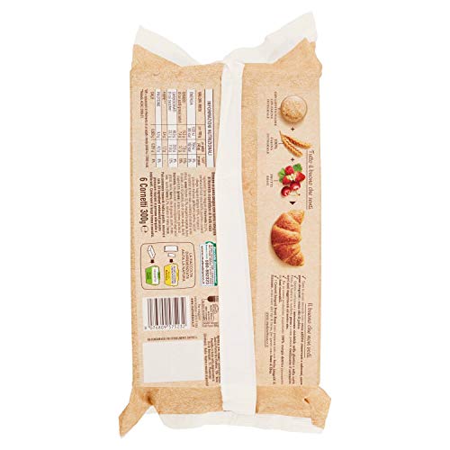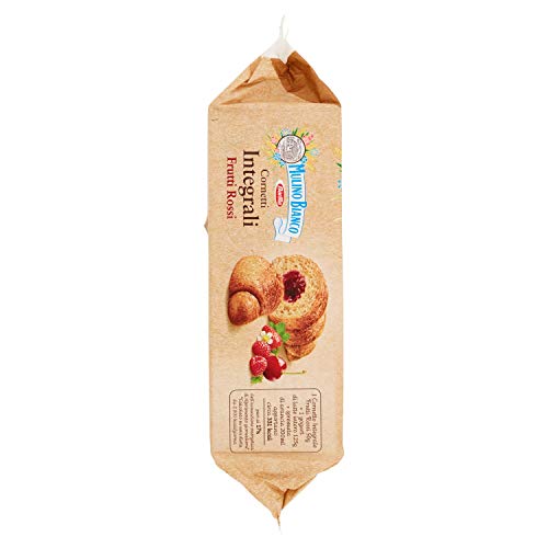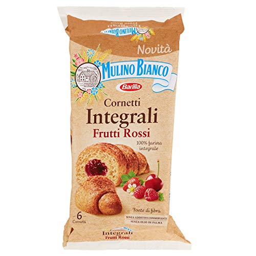 Mulino Bianco Cornetti Integrali Frutti Rossi con 100% Farina Integrale, Brioche di Pasta Sfoglia con Confettura di Frutti Rossi, Senza Olio di Palma, Confezione con 6 Cornetti