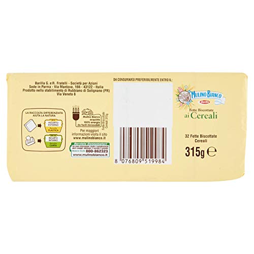 Mulino Bianco Fette Biscottate Le Cereali, Ottime per la Colazione - 315 g