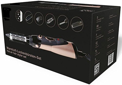 Mult iglam Locke Spazzola ad Aria Calda/Styling spazzola Ion tecnologia, Lisciatura spazzola con 1000 W, 6 adattatori (Piastra per capelli, ferro arricciacapelli, Spazzola ad Aria Calda, Asciugacapelli, airstyler), per funzione di raffreddamento, Rosegold