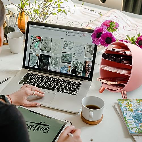 Multi-Function Organizzatore Trucchi, Porta Pennelli Make up, 5 Scomparti Portatrucchi Organizzatore Verticale per Pennelli, Rossetti, Eyeliner (Rosa)