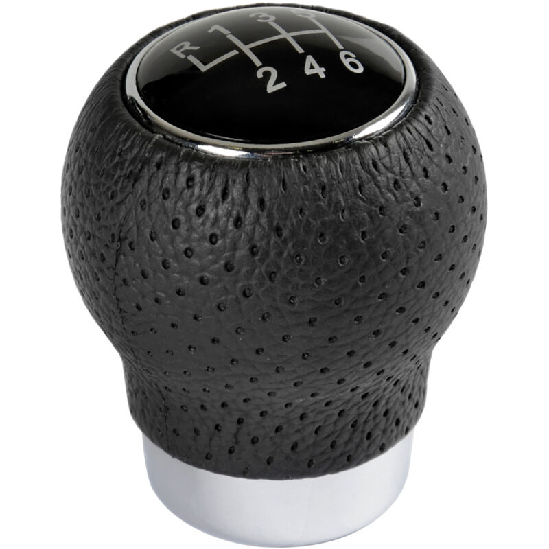 Pelle nera con cuciture nere e alluminio cromatoPomello leva cambio alluminio e pelle. 7 emblemi intercambiabili. Montaggio fai da te tramite kit con adattatori e chiave esagonale in dotazione.Attacco brevettato universale idoneo per leve cambio standard (? 15 mm max) e leve cambio speciali con ghiera di innesto retromarcia (? 32 mm max)