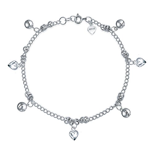 Multi Jingle Bells E Cuori Dangle Charms Cavigliera Pattilu India Per Donne Adolescenti .925 Argento Regolabile Da 9 A 9.5 Pollici Con Estensore