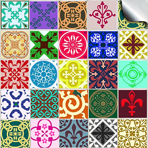 Multi Pack 1 -- - Piastrelle adesive per cucina e bagno (Tile Style Decals 24x), 24 pezzi | varie adesivi per piastrelle da 15 x 15 cm | pellicola adesiva per piastrelle | pellicola decorativa per cucina e bagno, Tp 57, 10cm - 24 Stück