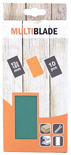 Multiblade - Foglio abrasivo professionale, 185 x 93 mm, 10 pezzi, grana 40, 8 fori, per legno e metallo, qualità professionale, per levigatrice orbitale