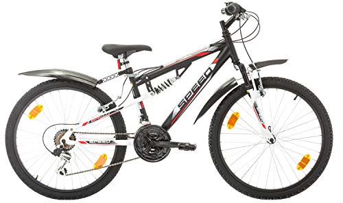 Multibrand, PROBIKE SPEED 24, 24 pollici, 330mm, FSP Mountain Bike, 18 velocità, Unisex, Set parafango, Nero Opaco (Nero + parafango, 24 pollici)