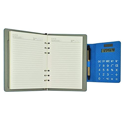 Multifunzione Organizzatori Personali 6 Anello Cuoio Tessuto Riempibile Binder Taccuino con Calcolatrice Solare Note Adesive Slot per Schede per Business Ufficio (Blu) 8.5''