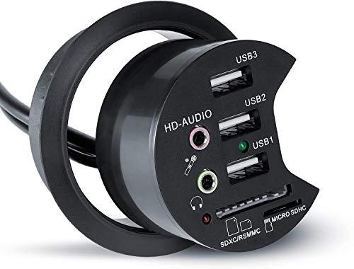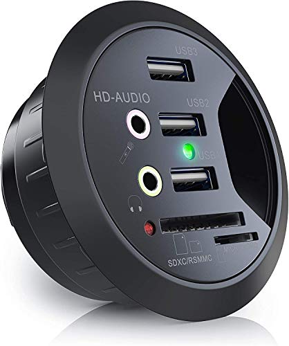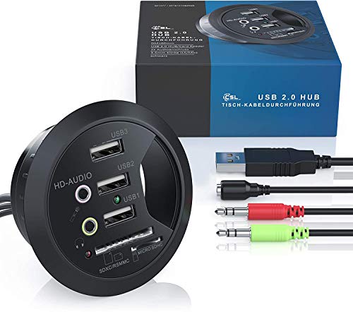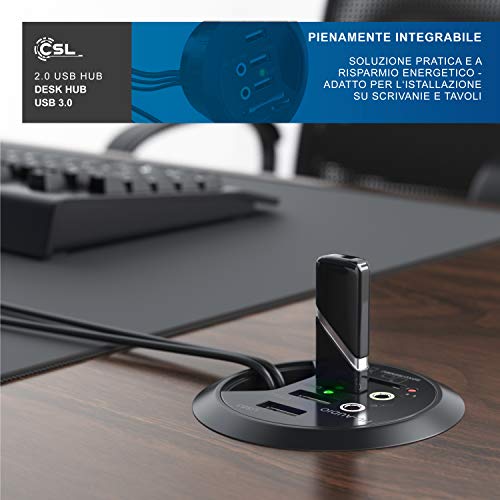 CSL - Hub Multifunzione da scrivania - Hub in-Desk - Passacavo da scrivania con Lettore schede Multiplo - Hub da scrivania - Hub USB - 2X collegamenti Audio - 3X USB 2.0-1x microSD - 1x SDXC RSMMC