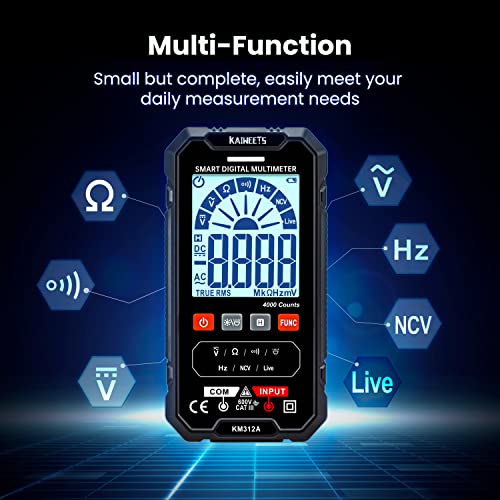Multimetro Digitale Auto-gamma 4000 Count Ultra-portable Voltmeter, KAIWEETS KM312A Multimetro di Misura di Tensione, Continuità, Resistenza, Tester della Batteria per la Casa, Automotive ecc.