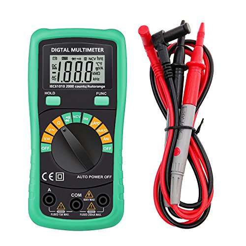 Auto-Ranging & auto-power off: 2000 conteggi Auto-Ranging multimetro misurare con precisione la frequenza di tensione AC/DC, corrente, resistenza, capacità, diodo.