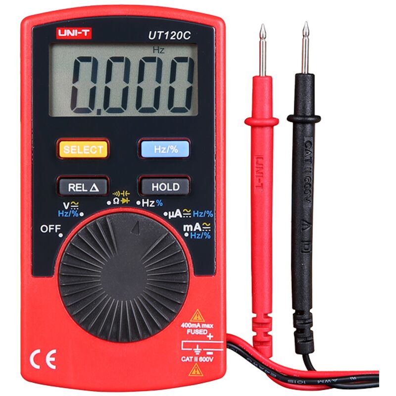 I multimetri della serie UT120 sono progettati per fai-da-te e ingegneri elettronici per la risoluzione dei problemi di sviluppo di sistemi elettronici e circuiti elettronici. È un multimetro semplice e portatile per ogni ingegnere elettronico. Portata Volt DC: ±(0.8%+1) 600V Volt AC: ±(1.2%+3) 600V Ohm: ±(1%+2) 40MΩ Capacità: ±(4%+3) 100μF Frequenza: ±(0.5%+3) 10MHz Duty cycle 0.1%~99.9% Display 43 x 22 mm, 4000 counts Auto spegnimento 30 minuti Alimentazione 1 batteria CR2032 Peso 76 grammi Dimensioni 110 x 58,2 x 10,8 mm Produttore UNI-T Modello UT-120B Codice prodotto 40.001.0011017