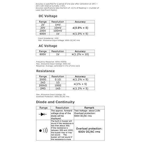 Multimetro digitale con conduttori di prova, protezione da sovraccarico, misura del diodo a tensione di tensione CC AC Misuratore multimetro DMM 1999 letture, retroilluminazione