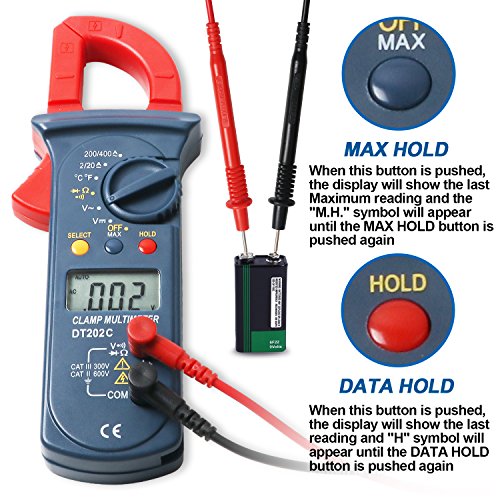 Multimetro, multimetro digitale DT202 C auto-ranging tester elettrico voltmetro Ohmetro con NCV, AC/DC tensione corrente Transistore diodo continuità acustico di misuratore