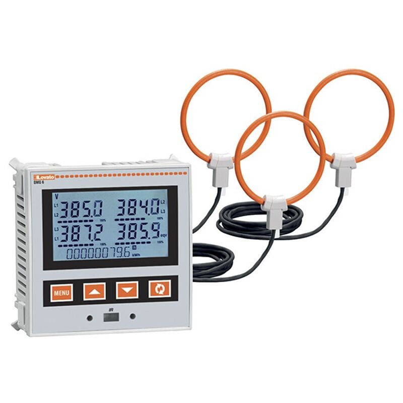 Multimetro digitale tipo DMG611 Lovato da incasso a LCD, con le seguenti caratteristiche: Tensione nominale ausiliaria AC: VAC 100...440 Tensione nominale ausiliaria DC: VDC 120...250 Tipo: Trifase + neutro Frequenza di impiego: 45/66 Hz Potenza assorbita: max 9.5VA Potenza massima dissipata: 3.5W Modalità di inserzione: Linee monofase, bifase, trifase e trifase bilanciata Corrente nominale (Ie): 1A/5A Inserzione con bobine di Rogowski A: 20...6300 Campo di misura: 0.01...1.2 / 0.01...6 Metodo misura: TRMS Sovraccaricabilità: +20% Ie da TA esterno con secondario 5A Altre caratteristiche tecniche: Limite termico di breve durata A: 50A per 1s Corrente massima (Imax) 500° Tensione nominale di isolamento IEC/EN: 600V Tensione nominale di tenuta ad impulso (Uimp): Kv 9.5 Tensione di tenuta alla frequenza di esercizio: kV 5.2 Tipo custodia: Poliammide Attacchi tipo: Estraibili Coppia di serraggio (Max): Nm 0.5 - lbin 4.5 Fissaggio: ad incasso Peso: 350 grammi Temperatura di impiego: -25/+60°C