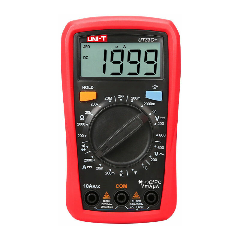 Multifunzionale] Questo multimetro può misurare la tensione CA e CC, la corrente CC, la resistenza, il diodo e la continuità del circuito di prova. Strumento ideale e test per prese domestiche, fusibili, cablaggi, circuiti automobilistici, batterie generiche e automobilistiche... La funzione di indicazione della batteria scarica, la staffa aperta a 120 gradi e il cicalino di continuità lo rendono più comodo da usare.,【Più sicuro】 Doppio fusibile anti-ustione, protezione da sovraccarico completo, protegge meglio la tua sicurezza. La custodia in gomma spessa rimovibile protegge il multimetro da piccole fuoriuscite e urti.,[La confezione include] 1. Scatola esterna/2. Host prodotto/3. Batteria (9V)/4. Scheda di garanzia manuale/5. Cavo di prova/6. Sonda di temperatura (solo UT33C+) UT33C+ ha la funzione di test della temperatura, la temperatura può essere testata utilizzando la termocoppia di tipo K