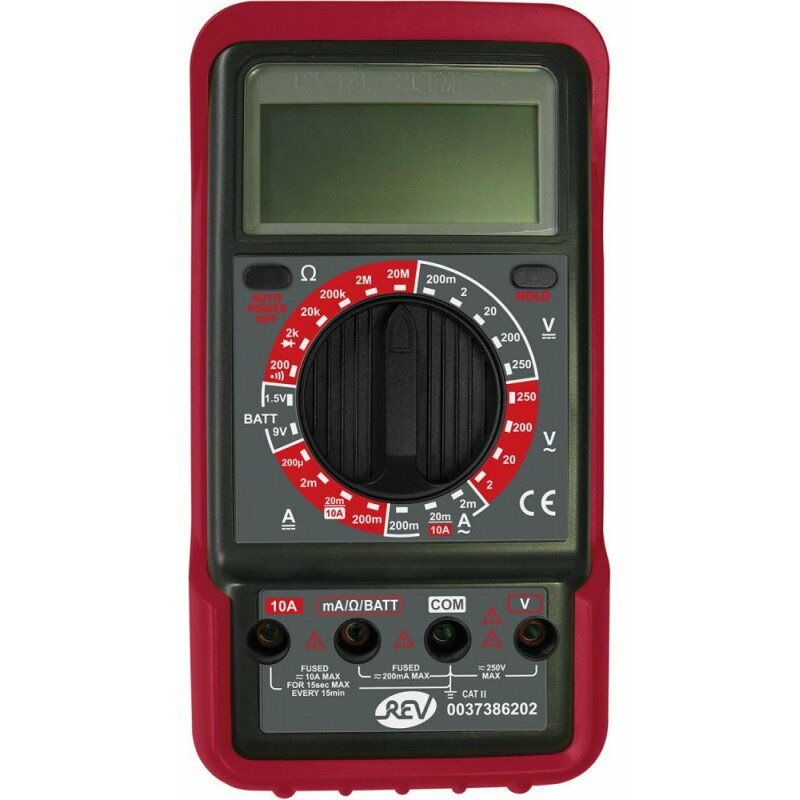 Multimetro digitale Profi rosso • Display digitale LCD con visualizzazione automatica della polarità • Test di continuità con segnale acustico • Test a diodi • CAT III • Campi di misura: - Tensione CA: 2 V - 300 V - Tensione CC: 200 mV - 300 V - AC: 2 mA - 10 A - Corrente continua: 200 μA - 10 A - Resistenza: 200 Ohm - 20 M Ohm • Fusibile fine: F10AH / 300 V. F250 mAH / 300 V • Batteria: blocco 6LR61 9V (incluso) Nessun articolo di magazzino! L'approvvigionamento avviene con breve preavviso. Osserva il VE! L'articolo è escluso dal reso!
