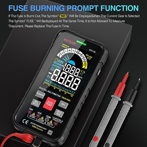 Misurazione precisa e funzione di memorizzazione dei dati: è un tuttofare per misurare la tensione AC/DC, la corrente AC/DC, la capacità, la temperatura, la frequenza, il ciclo di lavoro, la resistenza, la continuità e il test di diodi e conduttori di fase. Ampio campo di misurazione, alta precisione e memorizzazione dei dati. Adatto per la valutazione di problemi elettrici nel settore automobilistico, industriale e domestico.