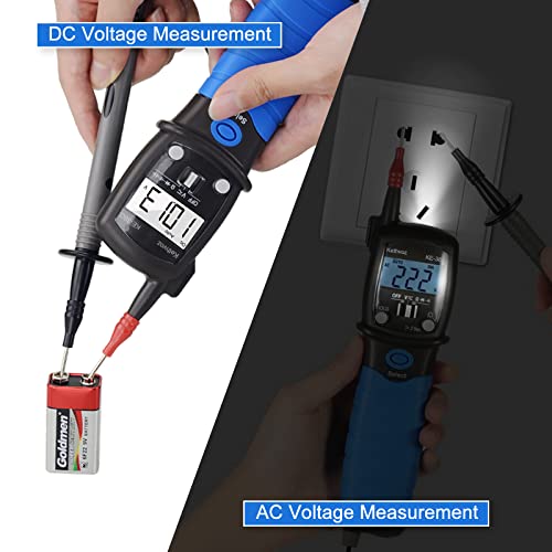 Retroilluminazione e torcia: tenere premuto il pulsante "HOLD" sul tester di tensione portatile per accendere la torcia luminosa e la retroilluminazione dello schermo LCD, in modo da poter testare e leggere al buio. Multimetro portatile per elettricisti ed elettricisti.