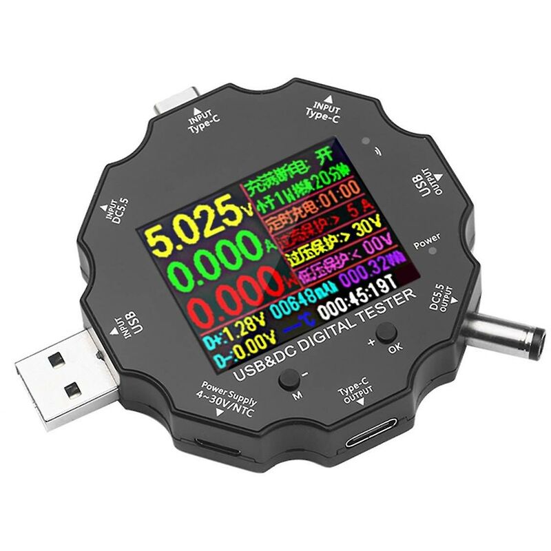 Caratteristiche:Misurazioni ad alta precisione - Materiali di alta qualità, componenti elettronici selezionati e tecnologia avanzata vengono utilizzati per creare questo strumento professionale con un display di precisione a 6 cifre. La sua precisione di misurazione raggiunge 0,00001. Ampia gamma di applicazioni: utilizzando il tester USB, è possibile testare prodotti CC come notebook, alimentatori di emergenza per auto, router, ecc. e monitorare lo stato di carica di corrente, tensione, alimentazione, capacità, e alimentazione in tempo reale. Monitoraggio remoto BT: tramite la funzione BT, il tester e il telefono cellulare possono ottenere l'accoppiamento APP Bluetooth. Lo stato di carica, vari dati di misurazione e grafici possono essere trasferiti e visualizzati sul telefono. È possibile passare da un'interfaccia di misurazione all'altra premendo i tasti. Multifunzionale: le caratteristiche includono la rotazione dello schermo, il riconoscimento rapido della carica, il rilevamento