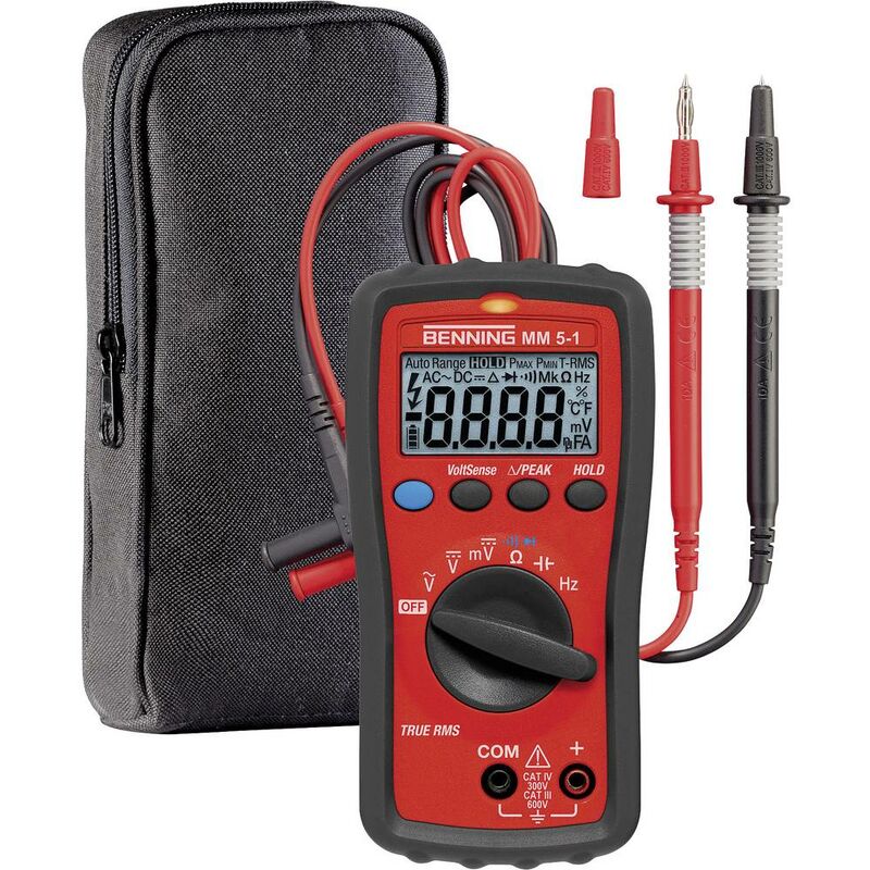 Dettagli tecnici Calibrato di fabbrica senza certificato Indicatore (digitale/meccanico/analogico) digitale Intervallo di misura resistenza 0,1 Ω - 40 MΩ Precisione (più / meno) 0.5 % Tipo prodotto Multimetro portatile MM 5-1 Multimetro digitale Serie innovativa di multimetri digitali con processo di misurazione del valore effettivo reale (TRUE RMS) e sensore di voltaggio integrato. Ambienti industriali richiedono strumenti di misura TRUE RMS! Carichi non lineari, ad esempio causati da azionamenti di motori con numeri di giri regolabili, convertitori di frequenza o alimentatori per attrezzature per ufficio e lampade a LED producono una potenza reattiva nella rete. Di conseguenza, i multimetri e le pinze amperometriche visualizzano i valori misurati con una precisione minore quando utilizzando il processo di misurazione (RMS) mediante determinazione della media. In molti casi, e particolarmente nell'ambiente industriale, è necessario l'impiego di moderni strumenti di misura TRUE RMS