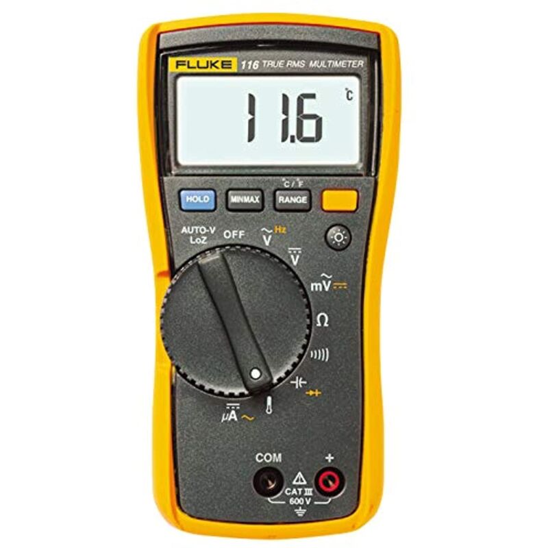 Ideato dagli elettricisti. Progettato da Fluke. Multimetro compatto a vero valore RMS per la ricerca di guasti HVAC (riscaldamento ventilazione e condizionamento). Il multimetro Fluke 116 è stato appositamente realizzato per i professionisti che operano nel settore degli impianti di riscaldamento ventilazione e condizionamento. Ha tutto ciò che serve in un multimetro HVAC comprese le misure di temperatura e di correnti dell'ordine dei microampere per una rapida ricerca guasti in caso di problemi nei sistemi di riscaldamento ventilazione e condizionamento dell'aria (HVAC) e nei sensori di fiamma.Sono disponibili anche il Fluke 114 il Fluke 115 e il Fluke 117 per elettricisti con rivelatore di tensione senza contatto.