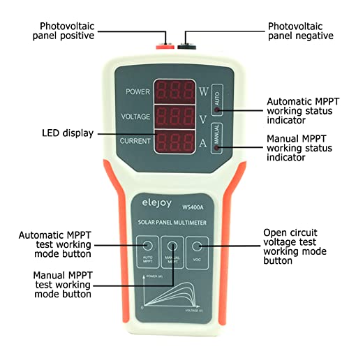 Multimetro Tester Digitale Tester MPPT Fotovoltaico Multimetro Voltmetro Amperometro Pannello Solare Tester MPPT Misuratore di Potenza Rilevatore di Tensione a Circuito Aperto(EL400B)