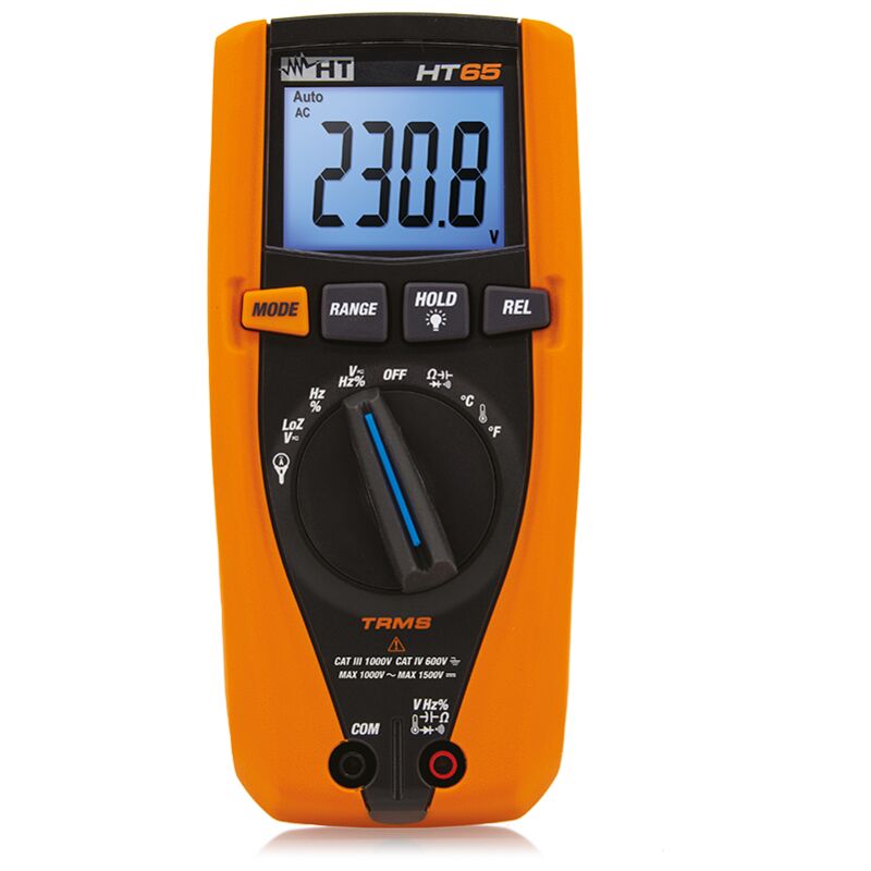 Multimetro digitale TRMS con sonda K Alimentazione: 1x9V batteria tipo IEC 6F22 Tensione DC fino a 1500V Corrente AC/DC con trasduttore esterno Temperatura con sonda K Ingresso tensione a bassa impedenza LoZ Display LCD retroilluminato Funzione Autorange cambio scala manuale Peso: 360g Dimensioni: 175x85x55mm Grado di protezione: IP40
