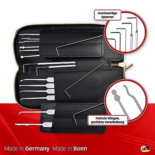 Facile da usare: il set Lock Pick è composto da 17 strumenti di alta qualità. Produzione tedesca di precisione lavorata a mano, in acciaio inossidabile ad alte prestazioni resistente. Prodotto in Germania