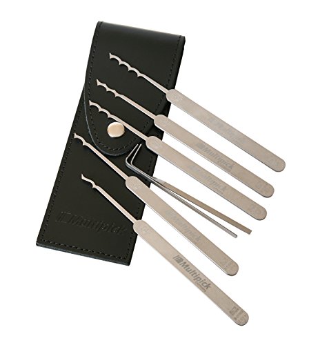 Multipick Set professionale Dietrich Elite 7 BOGOTA Lockpicking Set 7 pezzi in acciaio a molla di alta qualità in pregiata custodia in pelle bovina con bottone automatico - Originale Multipick made in