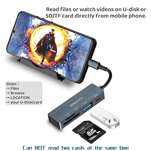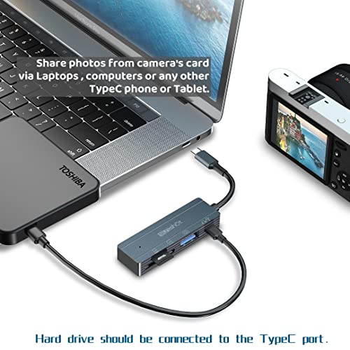 Lettore di schede TF/SD: è possibile condividere qualsiasi foto o video dalla scheda di memoria tramite questo adattatore dal telefono di tipo C o laptop/tablet. Compatibile con schede SD, SDHC, SDXC, RS-MMC, MMC, Micro SD, Micro SDHC, Micro SDXC e UHS-I in grande capacità fino a 1 TB. (Non può leggere due carte contemporaneamente)