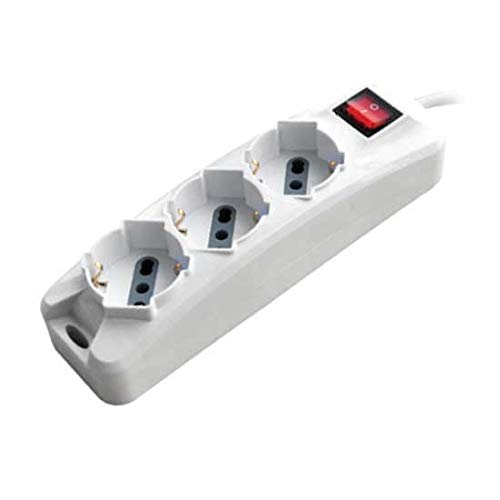 Multipresa con Cavo 1,5mt 3 Prese 10/16A Bipasso + Shuko Interruttore Luminoso e Spina 16A, Bianca