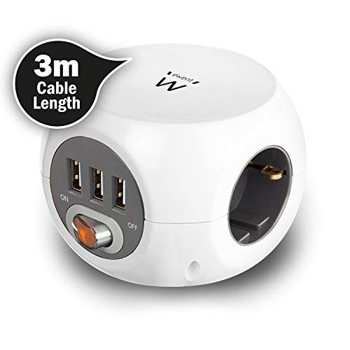Multipresa Elettrica Cubo, Ciabatta Elettrica da scrivania 3 Prese Schuko e 3 USB 2.4A, Cavo da 3 mt con pina Schuko, Protezione Sovraccarico e Sovratensione per Ufficio e Casa, bianca