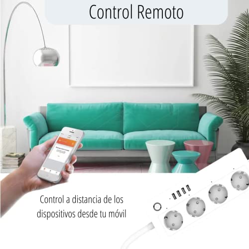 Multipresa intelligente WiFi con 3 prese e 4 porte USB, ricarica rapida, compatibile con Alexa, Google Home e Smart Life, iOS e Android, programmabile - Smartfy