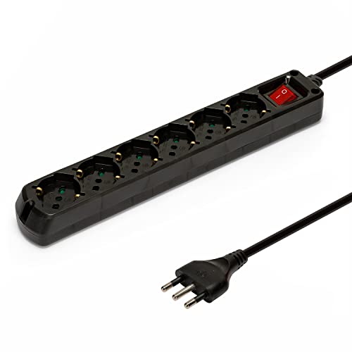 Multipresa 6 posti polivalenti schuko + 10/16a con interruttore cavo 1m e spina 16a