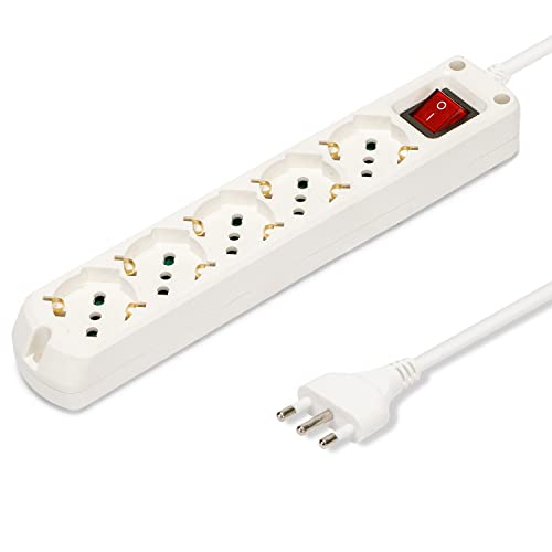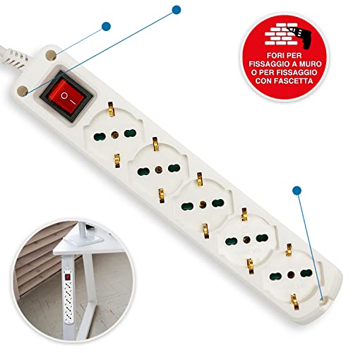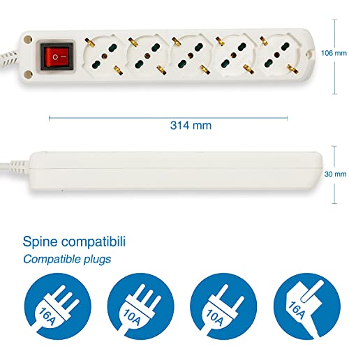 Multipresa 5 posti polivalenti schuko + 10/16a con interruttore cavo 1m e spina 16a