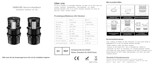 【Parametri】 La presa da incasso può essere installata in un foro di 120 mm di diametro sul piano di lavoro. Potenza massima 3680 W, 250 V, 16 A, 2 USB (2,4 A/17 W) Lunghezza estensione 1,5 m, cavo HDMI 1,6 m e cavo RJ45 1,7 m.