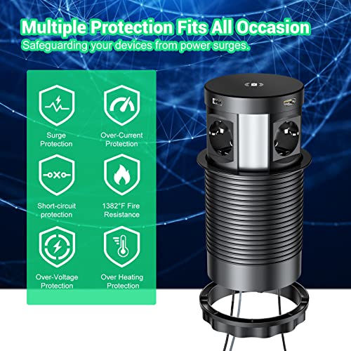 Multipresa da Scrivania, Torretta Multipresa a Scomparsa 4 Prese EU e 2 USB con 1RJ45 + 1HDMI, Protezione contro le Sovratensioni Ciabatta con Caricatore Wireless per Viaggi in Ufficio 3680W/16A