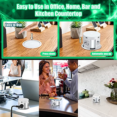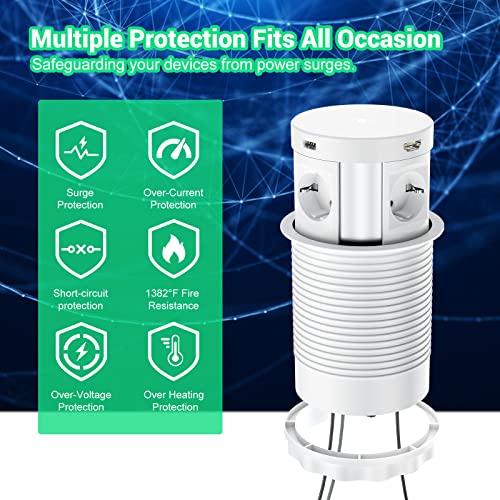 Multipresa da Scrivania, Multipresa Verticale a Scomparsa 4 Prese EU e 2 USB con 1RJ45 + 1HDMI, Protezione contro le Sovratensioni Ciabatta con Caricatore Wireless per Viaggi in Ufficio 3680W/16A