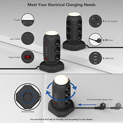 【Sicuro e affidabile】SANPOPO Ciabatta Multipresa 9 prese con 6 Porte USB resiste a temperature fino a 750 ° C.Garantisce un'alimentazione sicura ed affidabile per i vostri elettrodomestici. Multipresa Verticale SANPOPO offre le seguenti molteplici funzioni di protezione di sicurezza:protezione da sovraccarico, sovratensione, flash, protezione da cortocircuito.la torretta multipresa chiude automaticamente la sorgente in caso di sovratensione o cortocircuito.
