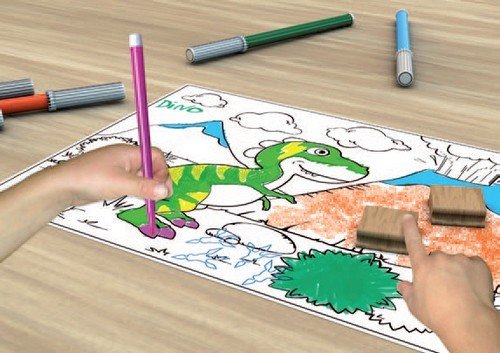 Colore e timbri sul tuo dinosauro per personalizzare lui