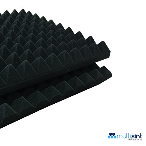 Multisint - Pannelli Fonoassorbenti Piramidali Ignifughi Certificati Classe 1IM - 50x50x4,5(1,5+3)cm - Densità 30 + Colla MultiSpray (Confezione 14 Pannelli + 1 Bomboletta) - Produzione 100% Italiana