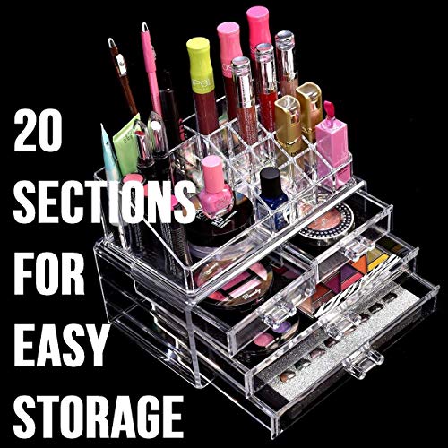 Acrilico trasparente si adatta tutto ciò di cui hai bisogno: questo make up Box è stato progettato con 20 scomparti per una facile memorizzazione di tutti i tuoi strumenti per il trucco in Easy-slide cassetti con maniglie Plus il design consente di vedere esattamente cosa c' è dentro per fornire facile accesso a tutto il necessario