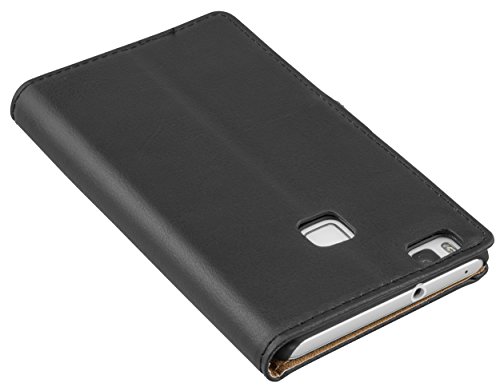 Mumbi Borsa in vera pelle Bookstyle compatibile con Huawei P9 Lite, nero